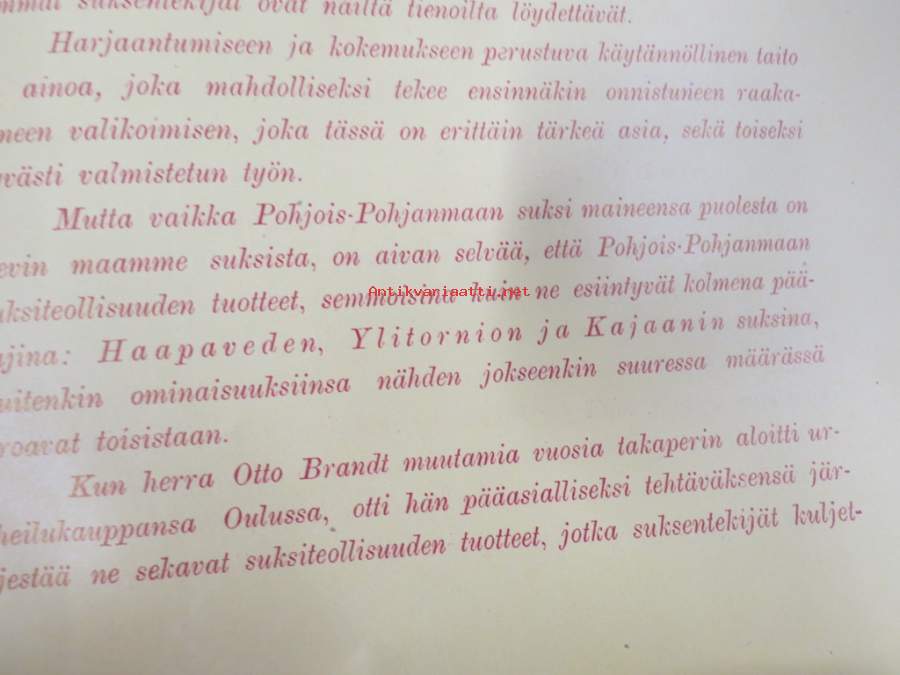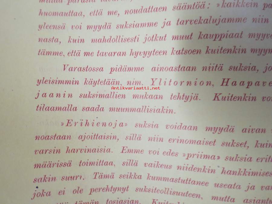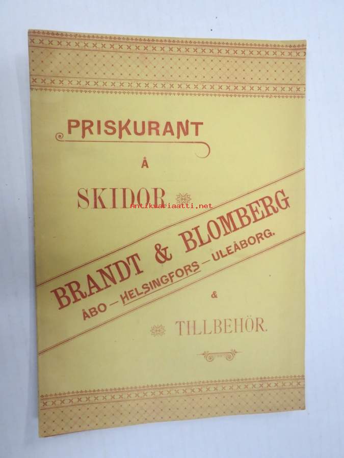 jossa Brandtin ja Blombergin toiminimi on "järjestänyt'" hajanaisen suksituotannon erilaisten verstaiden ja puusepänliikkeiden tuotannosta sopivat mallit kaupallisesti tarjolle. Luettelo on kaksikielinen - suomi & ruotsi.