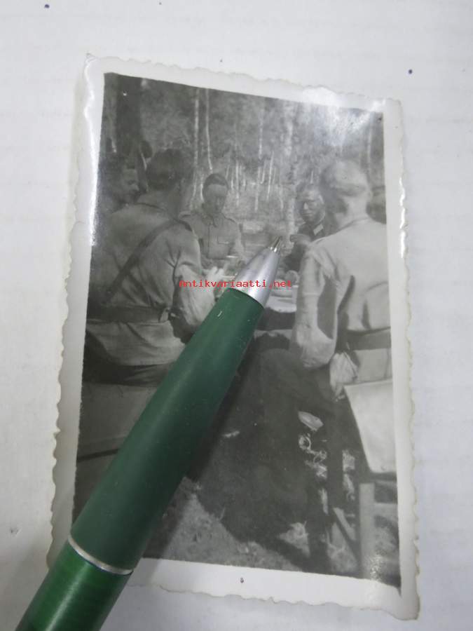 Katukuva, sotilaat kivääreineen + ajokoira -valokuva