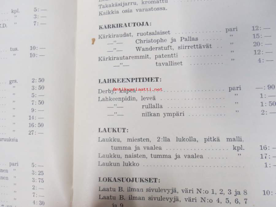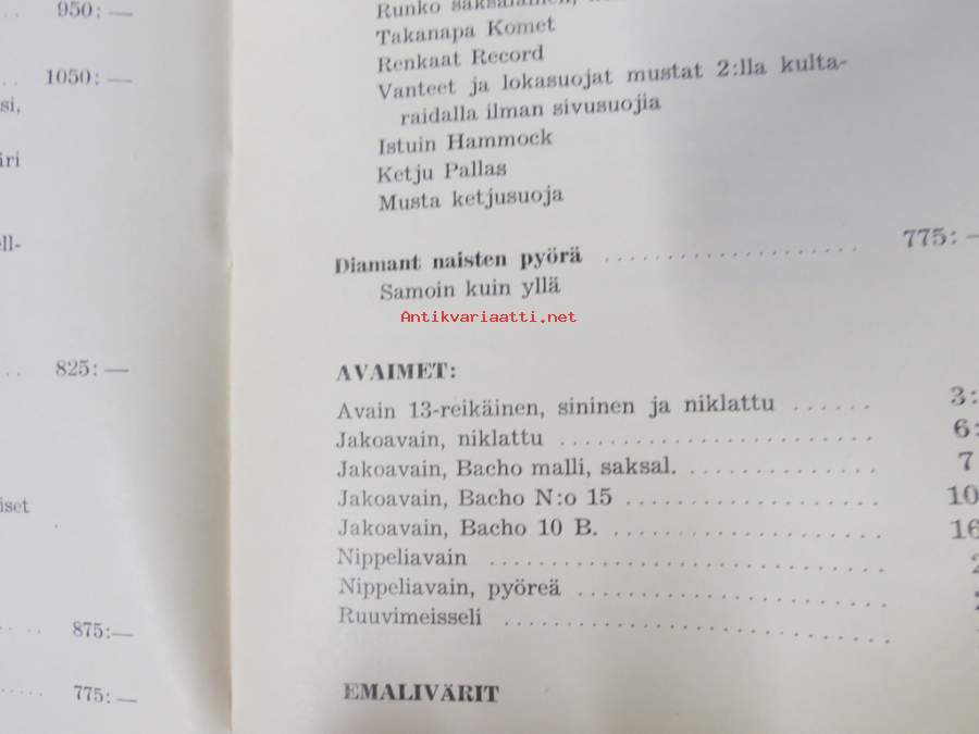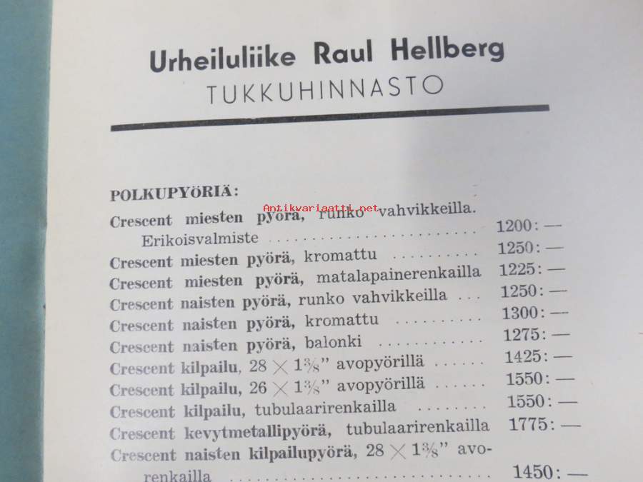 Raul Hellberg - Pyöräilijöiden erikoisliike - Polkupyörien ja osien Tukku-Netto Hinnasto 1935