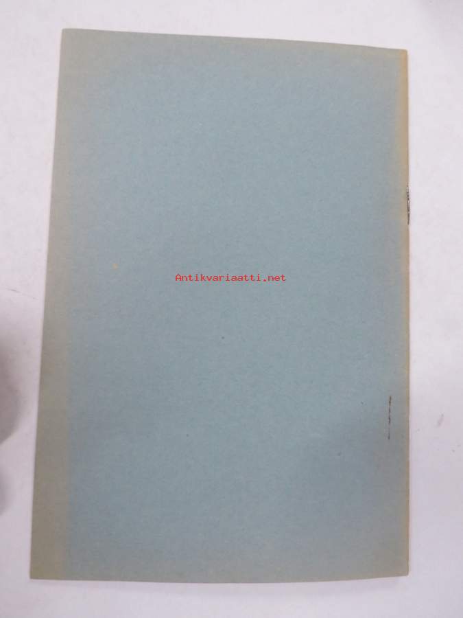 | Saatavilla | 1 kpl | | Julkaisuvuosi | 1935 | | Sivuja | 16 | | Kunto | K3 | | Sidonta/painoasu | Nidottu (pehmeäk.) | | Kielet | Suomi |