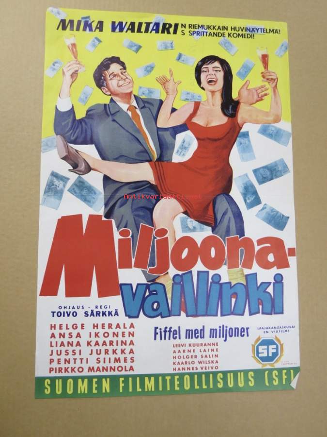 Miljoonavaillinki -elokuvajuliste, käsikirjoitus Mika Waltari, ohjaus Toivo Särkkä, osissa Helge Herala, Ansa Ikonen, Liana Kaarina, Jussi Jurkka, Pirkko Mannola