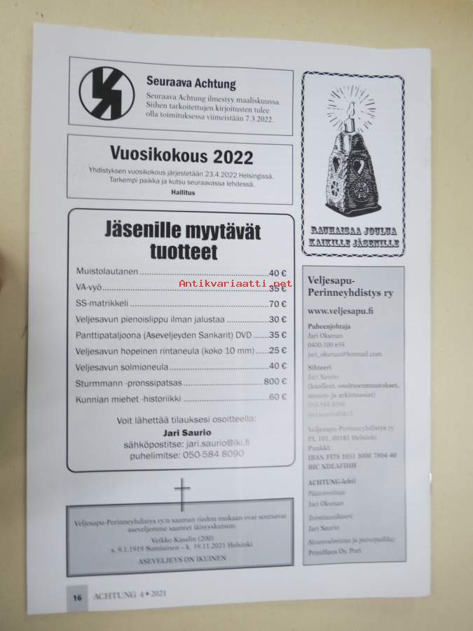 Achtung nr 111 (4/2021) Veljesapu-Perinneyhdistys ry:n jäsen ja tiedotuslehti