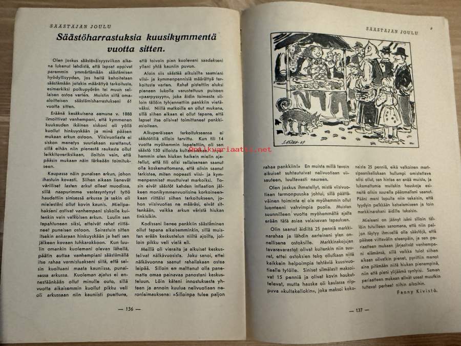 Säästäjän joulu 1949 nr 12 -säästöpankkien asiakaslehti, artikkeleita, sarjakuvia yms.