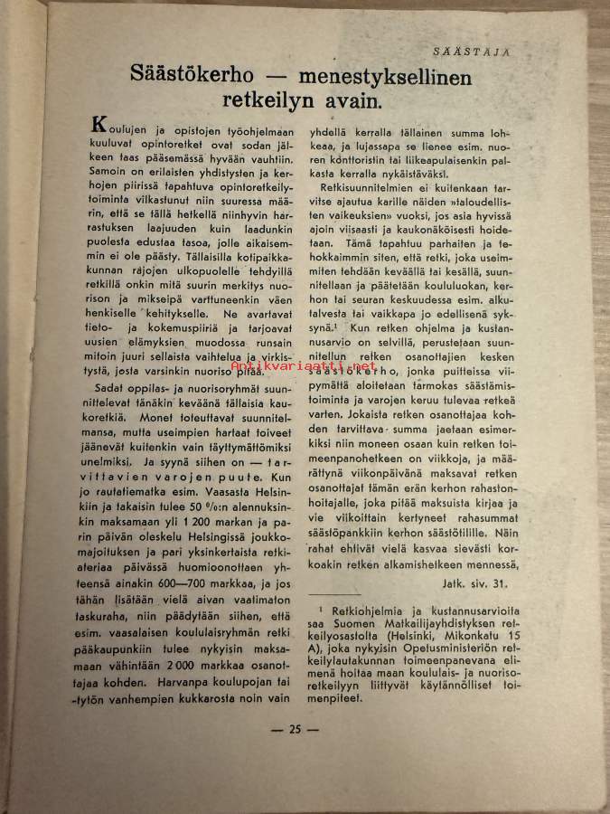 Säästäjä 1947 nr 1 -säästöpankkien asiakaslehti, artikkeleita, sarjakuvia yms.