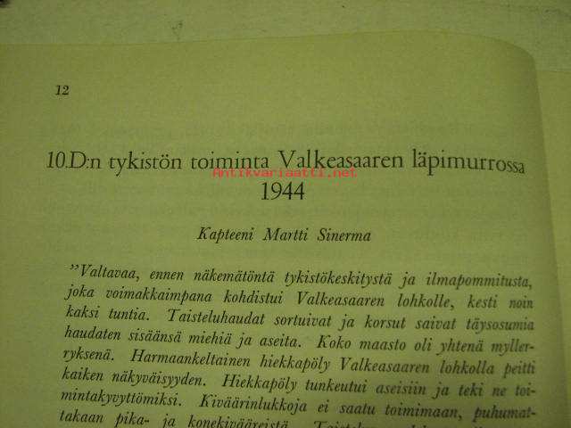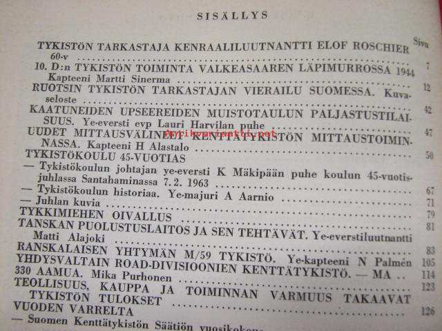 Tykkimies 1963 - Suomen kenttätykistön säätiön vuosikirja nr 6 sis. mm. artikkelin 10.Divisioonan toiminta Valkeasaaren läpimurrossa 1944