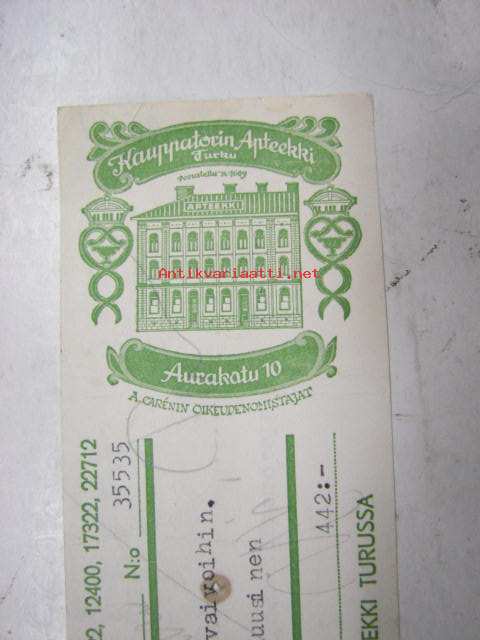 Kauppatorin Apteekki, Turku, 4.8.1961 -apteekkisignatuuri