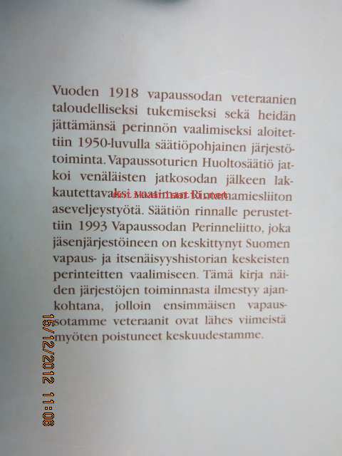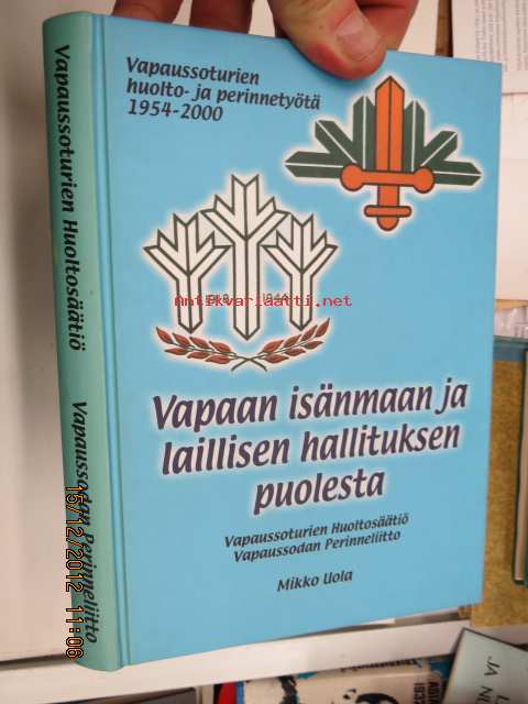 Mikko Uola, Vapaussoturien Huoltosäätiö, Vapaussodan Perinneliitto, 2000 15 x 21 cm. Nimiluetteloon merkitty numeroin (tussilla) Turun seudulla vaikuttaneet Vapaussoturien Huoltosäätiön kultaisen merkin saaneet.
