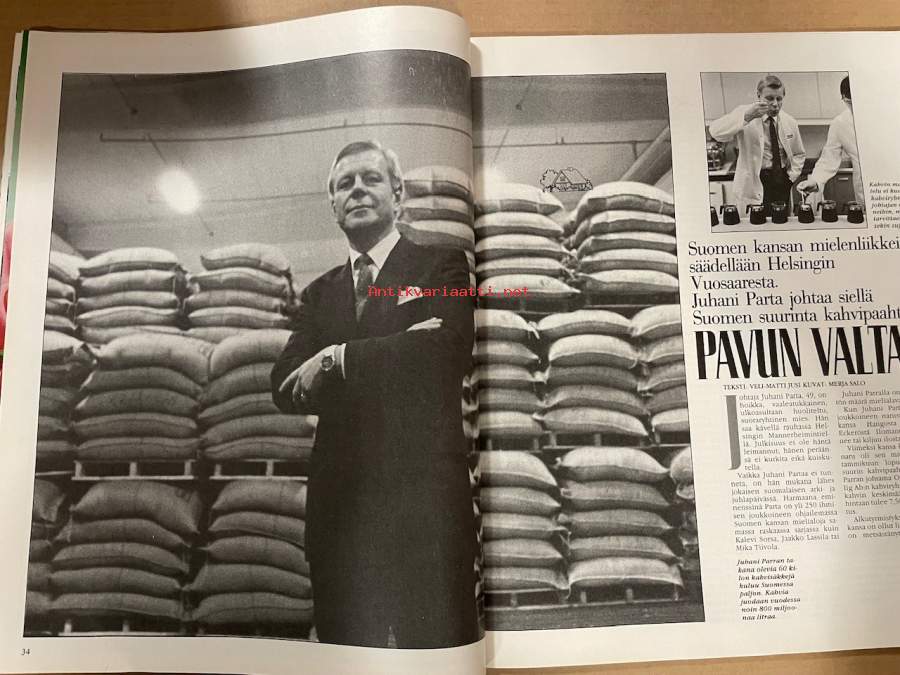 Kotiliesi 1986 nr 4, Muotisinfonia, Pappila puiston keskellä [Nils Rönnholm perheineen), Juhani Parta - (Oy Gustaf Paulig Ab]