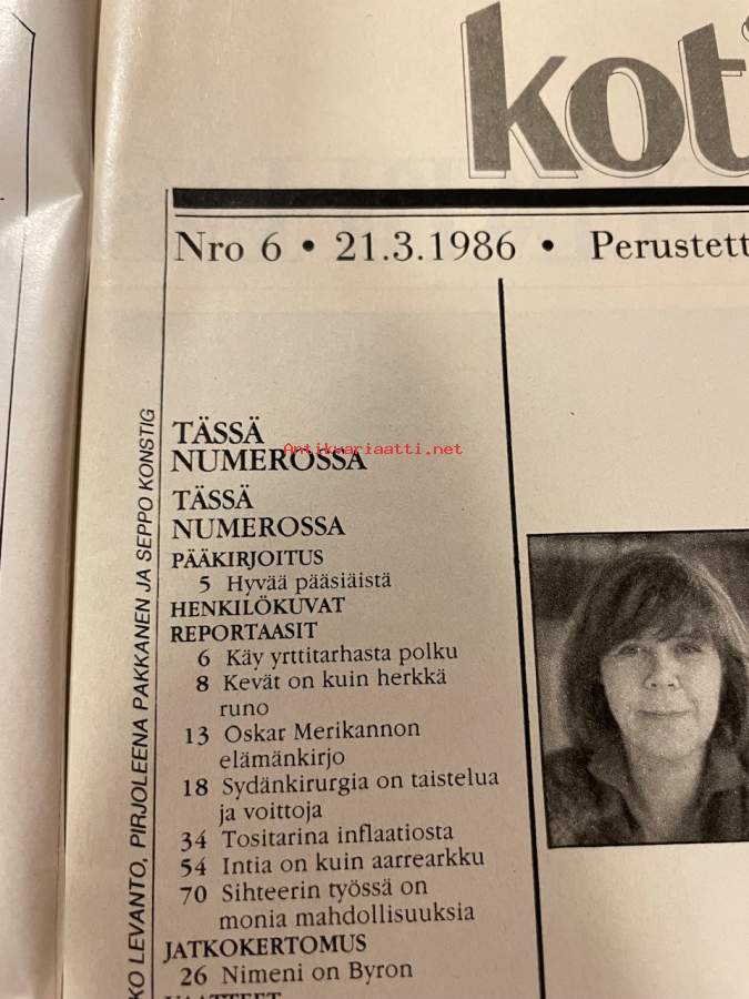 Kotiliesi 1986 nr 6, Lempivaatteet ja suosikkiasut, Kaija Huttunen - sydänkirurgi, harrastuksena vaaleanpunainen talo - Gitta ja Valto Kokko Jutikkalan kylä