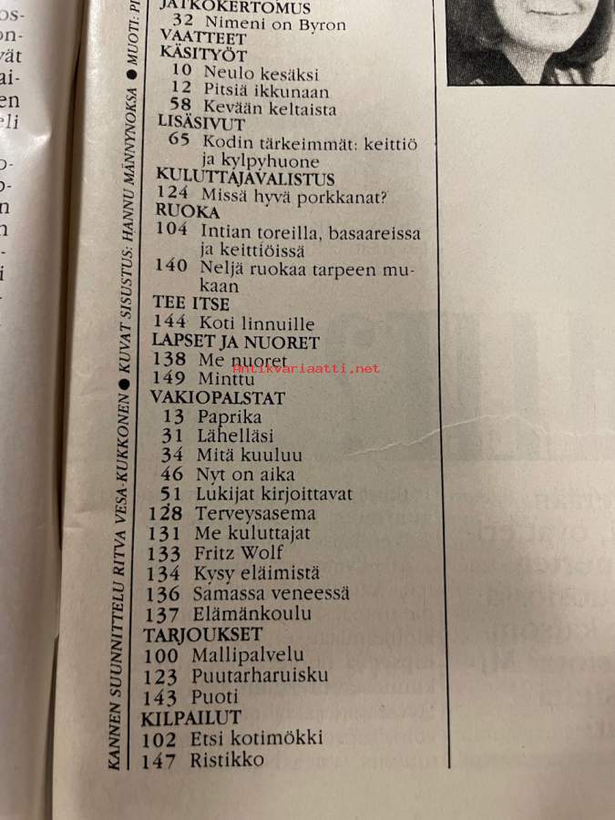 Kotiliesi 1986 nr 14, Sirkka Seljan Villiruusu, kulkureitit Nelostiellä, Kuopio, liemimalja