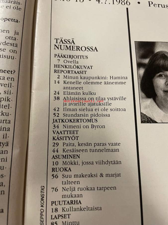 Kotiliesi 1986 nr 14, Sirkka Seljan Villiruusu, kulkureitit Nelostiellä, Kuopio, liemimalja