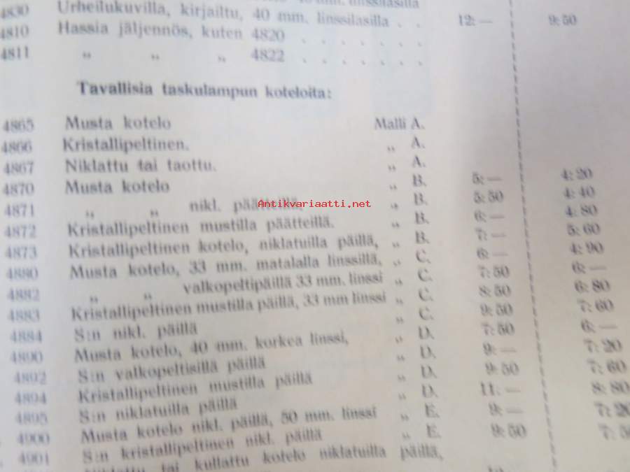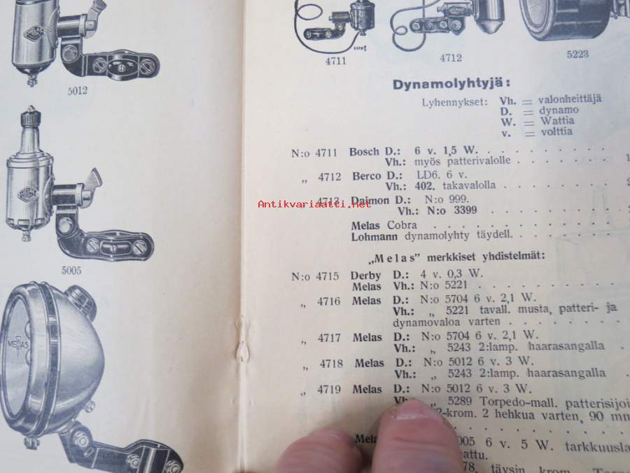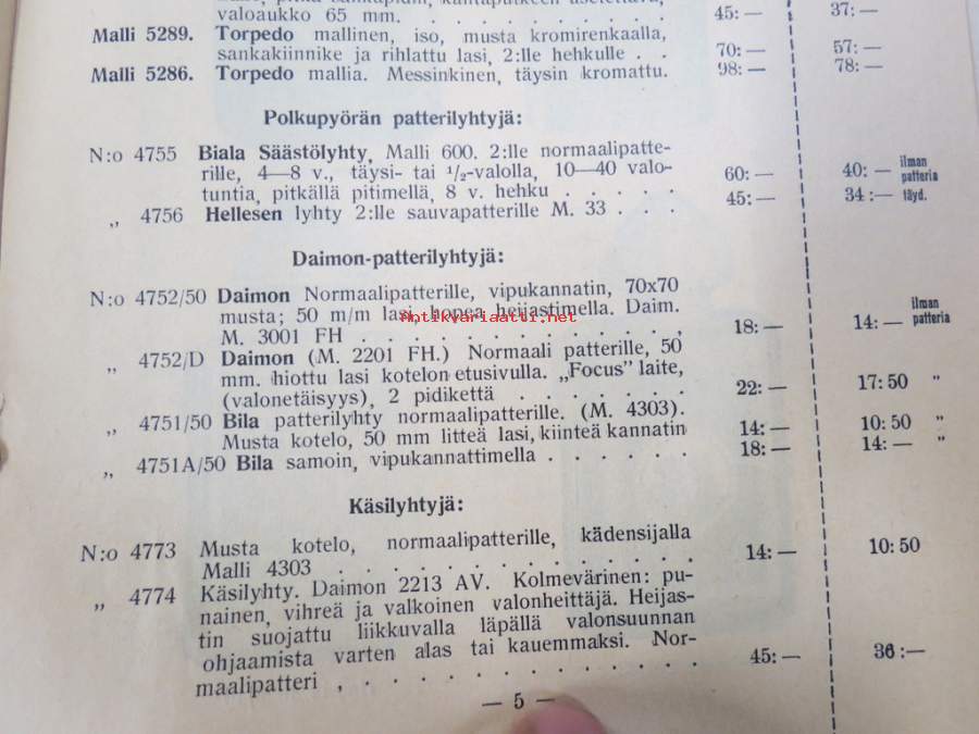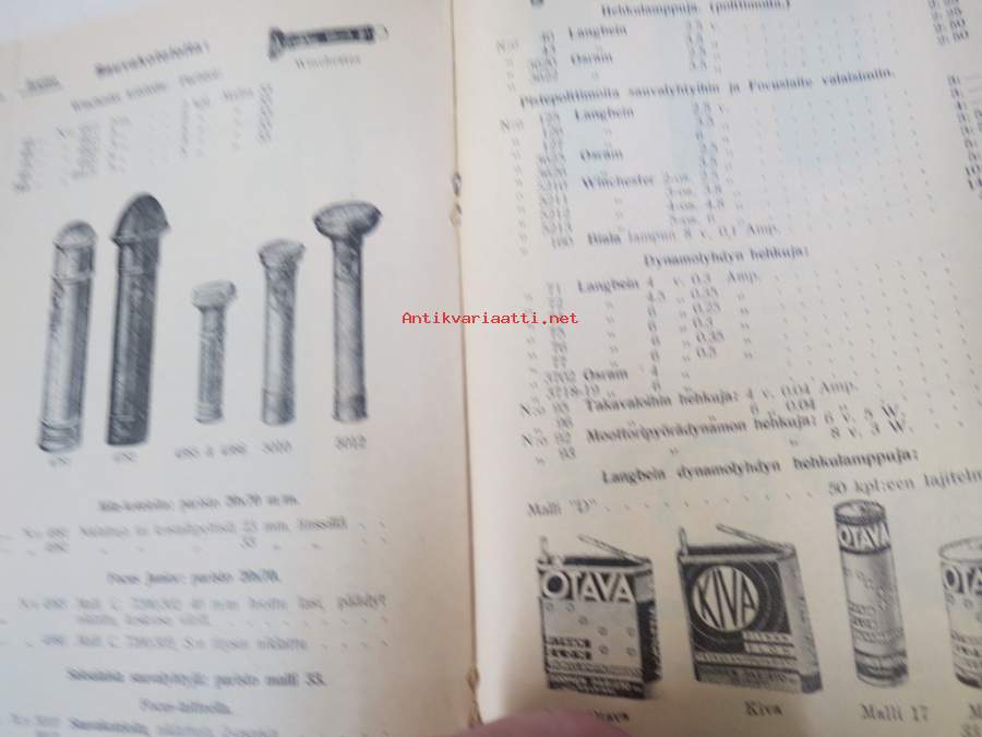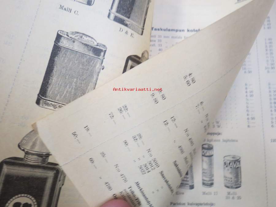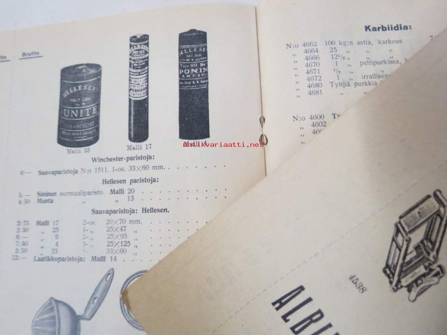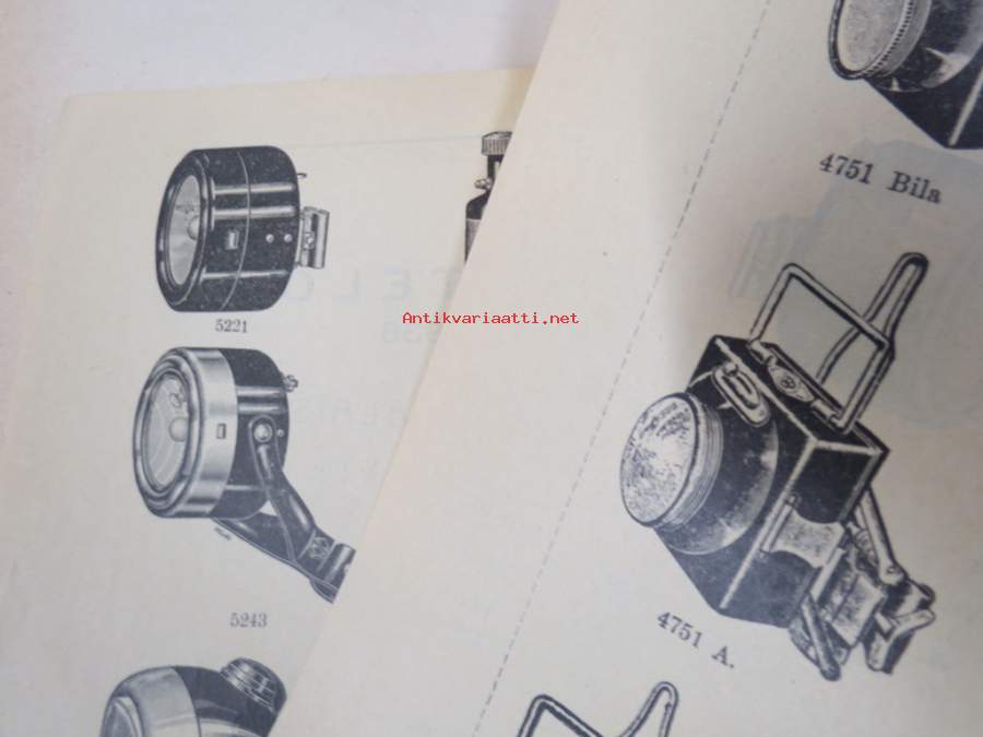 Polkupyörävalaisimia, taskulamppuja ym. 1935-1936 Albin Kemppi Oy, Viipuri-tuoteluettelo / hinnasto