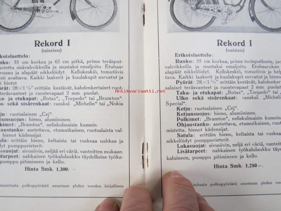 Örnen polkupyörät 1935 Albin Kemppi Oy, Viipuri -tuoteluettelo / hinnasto