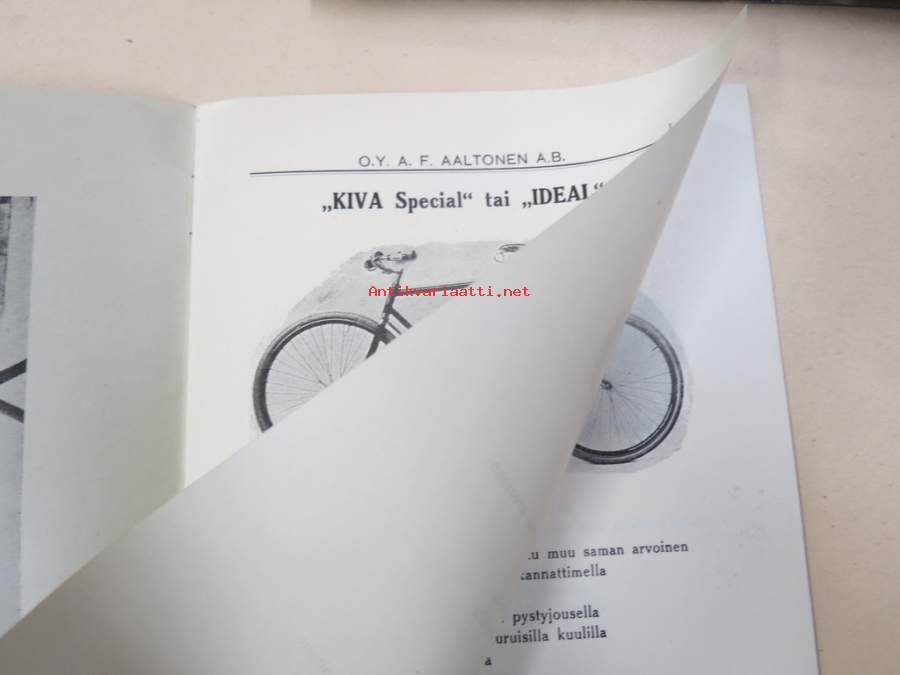Polkupyörähinnasto 193?, Oy A.F. Aaltonen Ab, Turku -tuoteluettelo / hinnasto