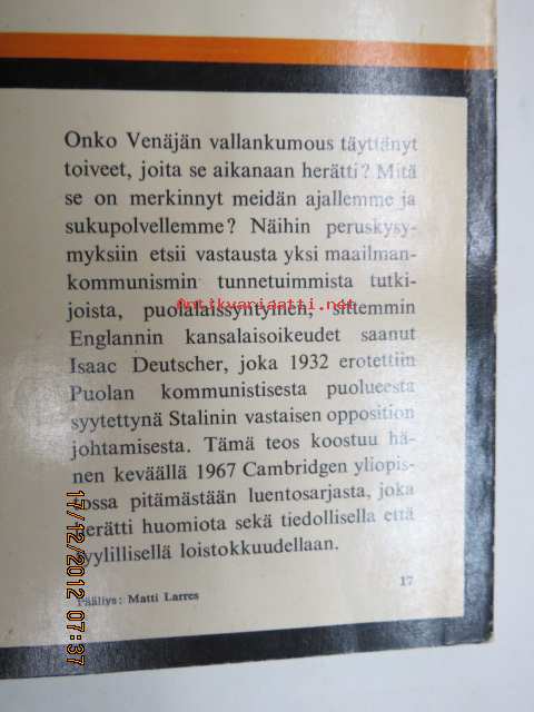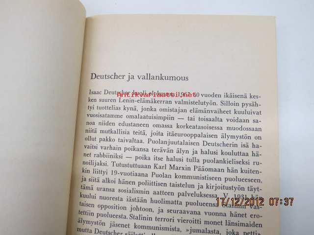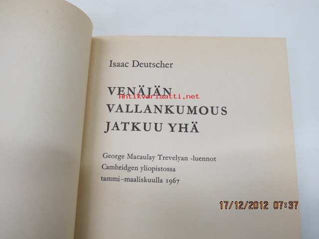Deutscher Isaac, WSOY, 1967 11 x 18 cm. George Macaulay Trevelyan -luennot Cambridgen yliopistossa tammi-maaliskuulla 1967. Esipuhe Heikki Eskelinen. Päällys Matti Larres