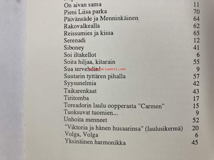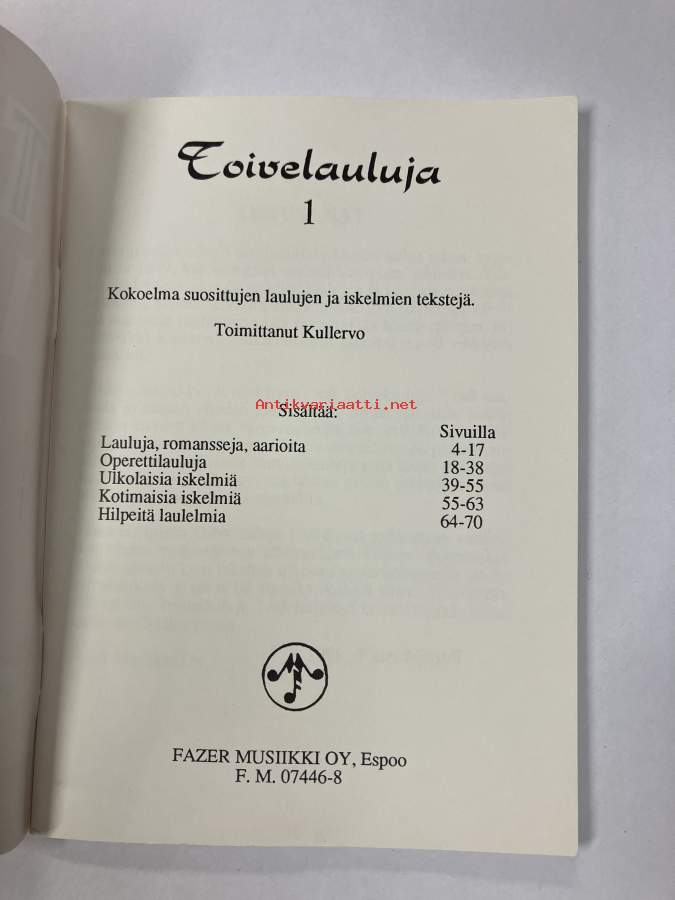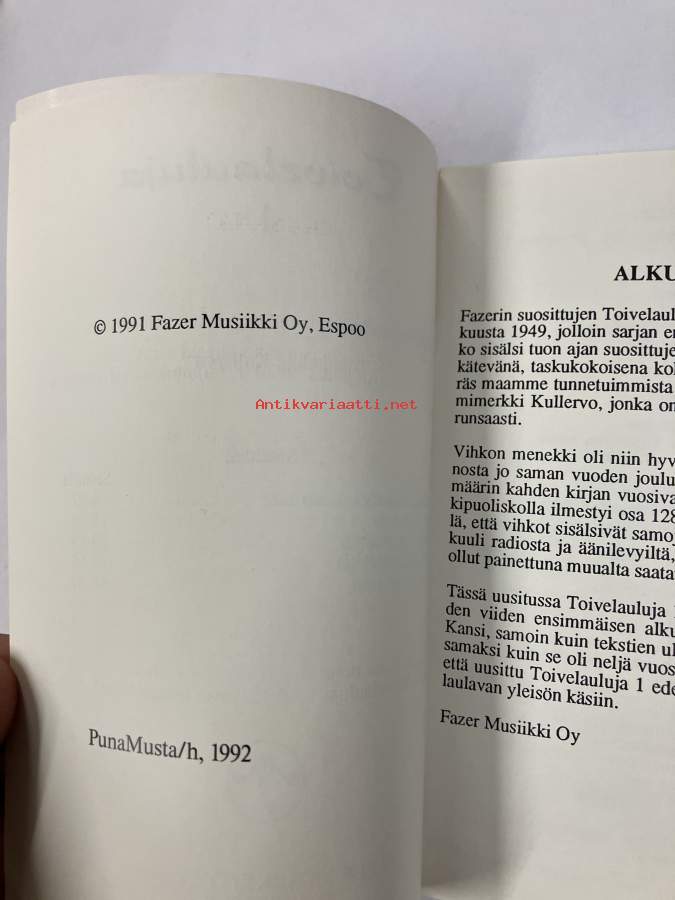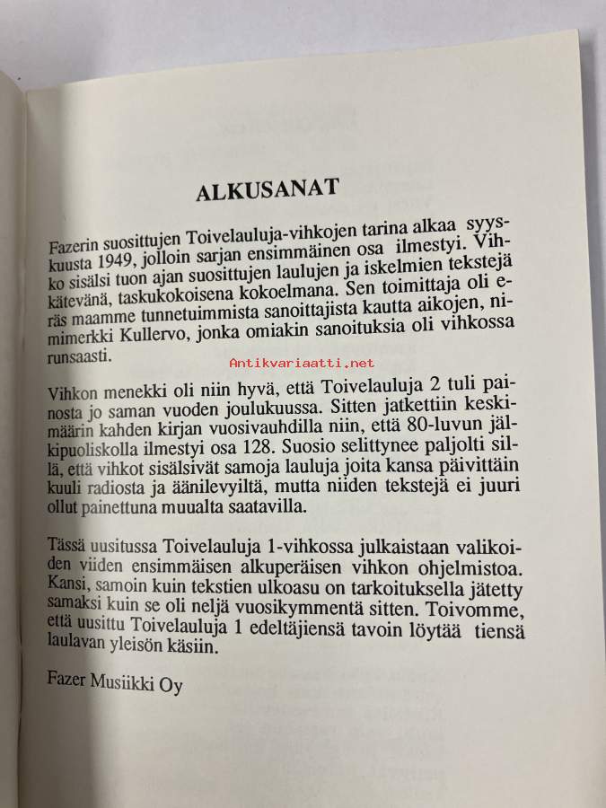 Toivelauluja 1 - Kokoelma suosittujen laulujen ja iskelmien tekstejä, Toimittanut Kullervo - vuonna 1992 julkaistu Toivelauluja-vihkojen viiden ensimmäisen Näytä