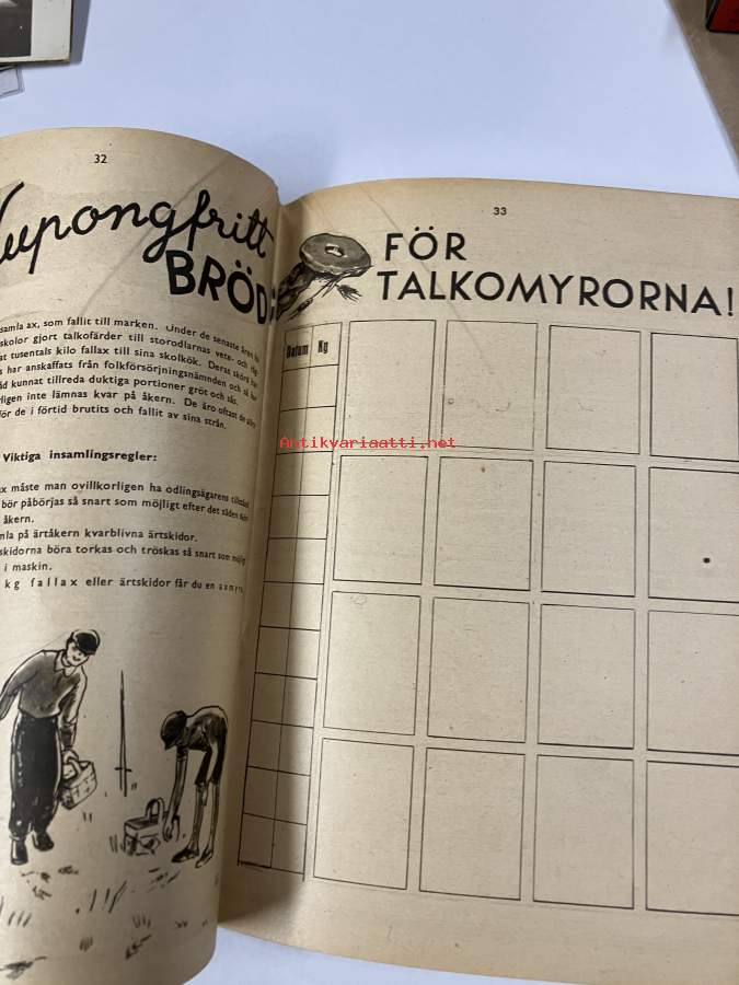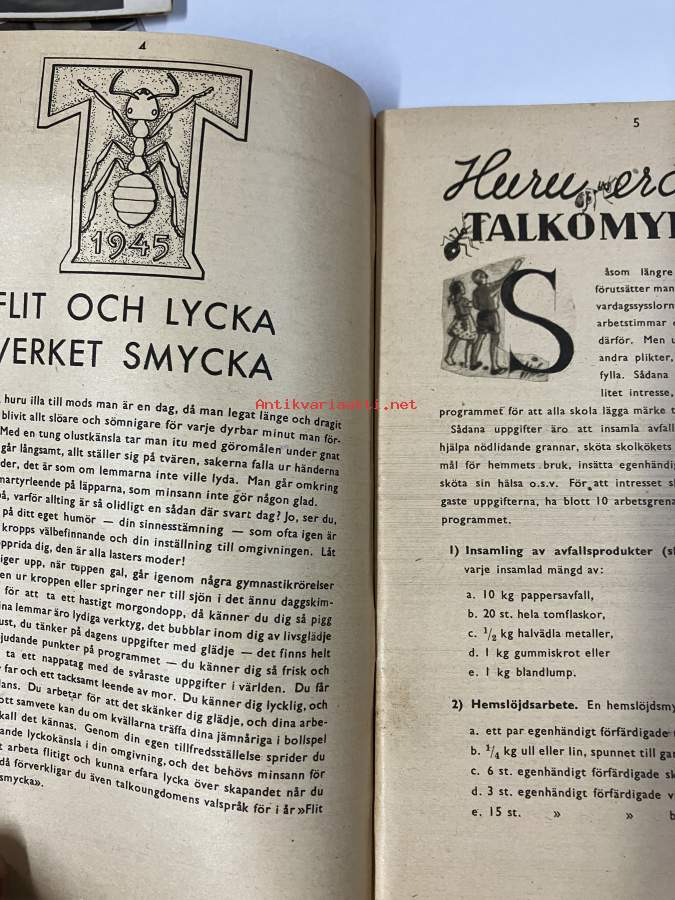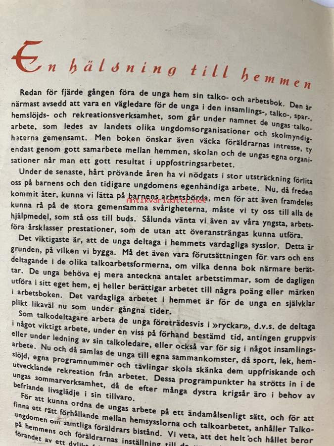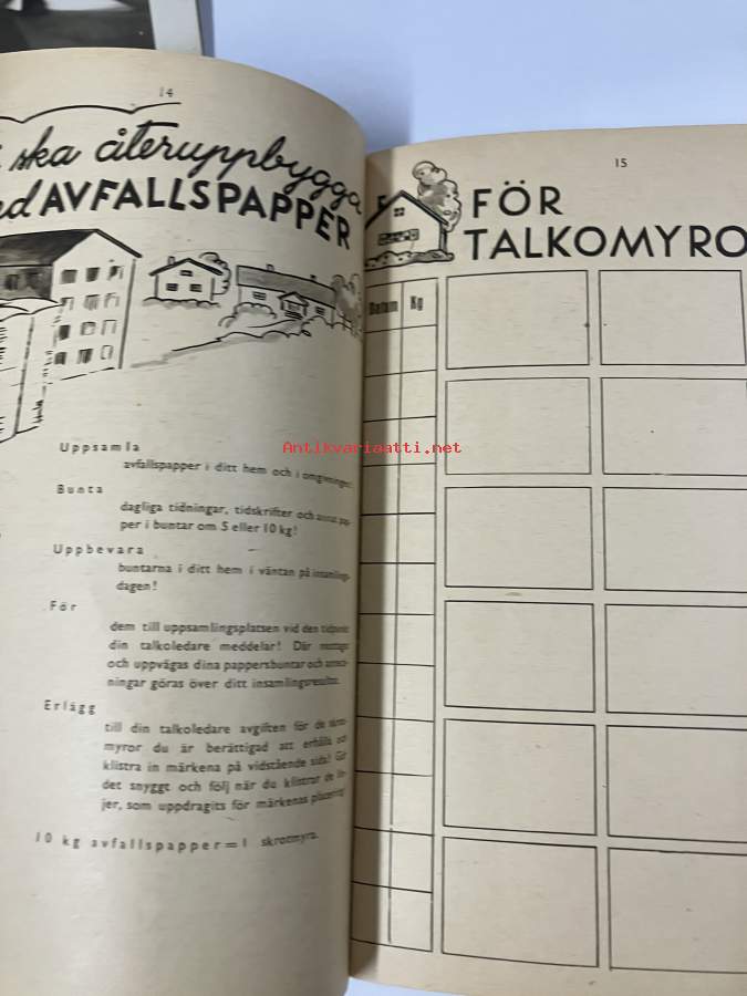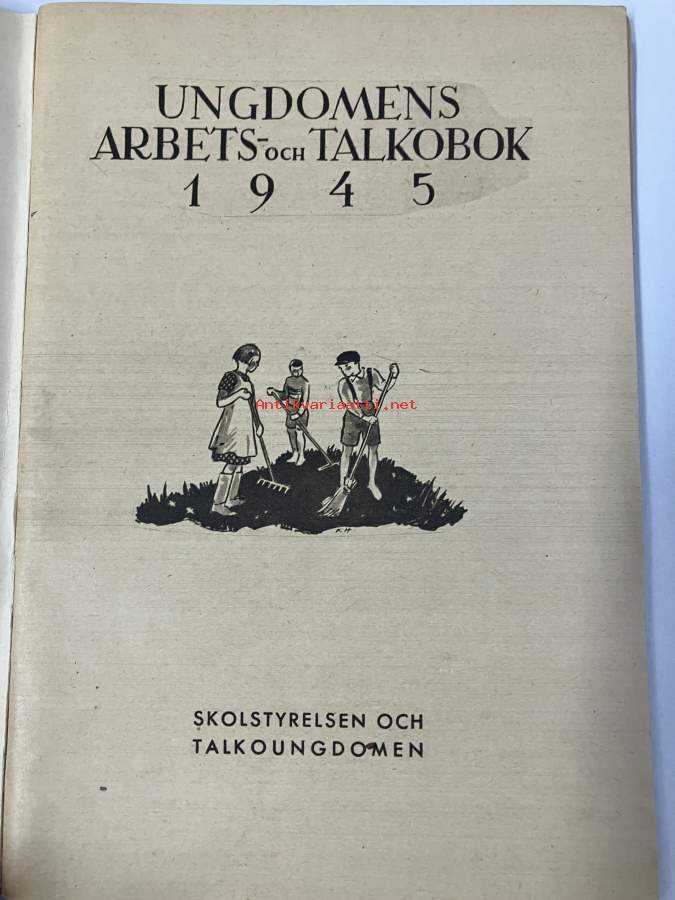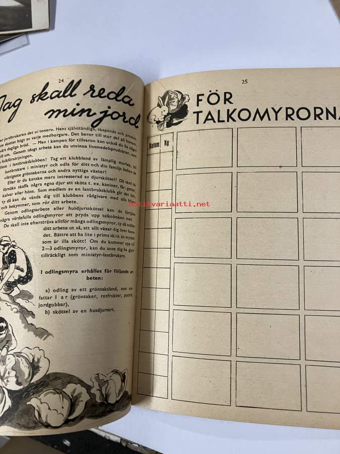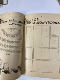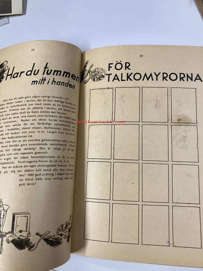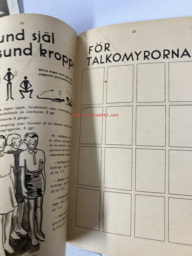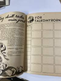 Ungdomens Arbets- och talkobok 1945 (Alf Alm, Lovisa), kuvittanut Martta Wendelin ym. -talkookirja, johhon kerättiin suoritusmerkkejä