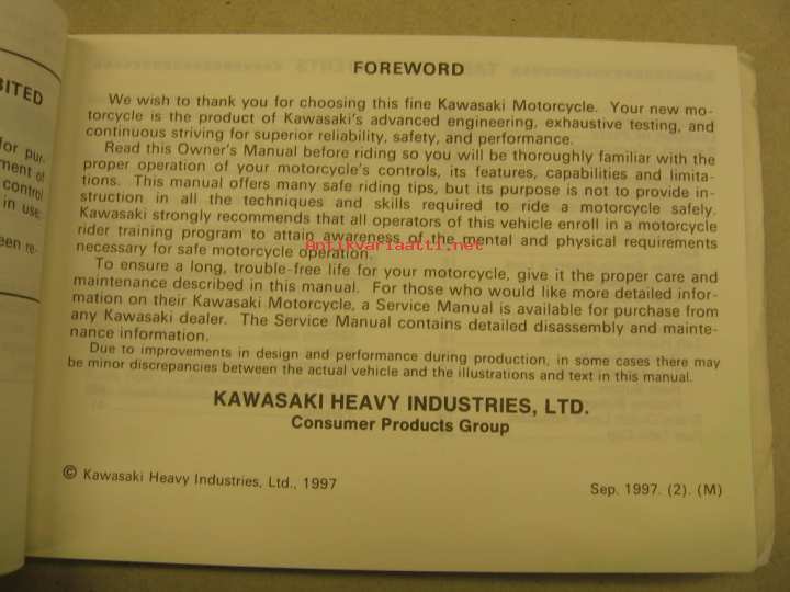 Kawasaki ZZ-R1100 owner´s manual käyttöohjekirja