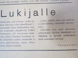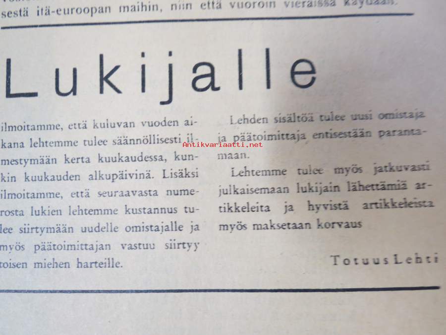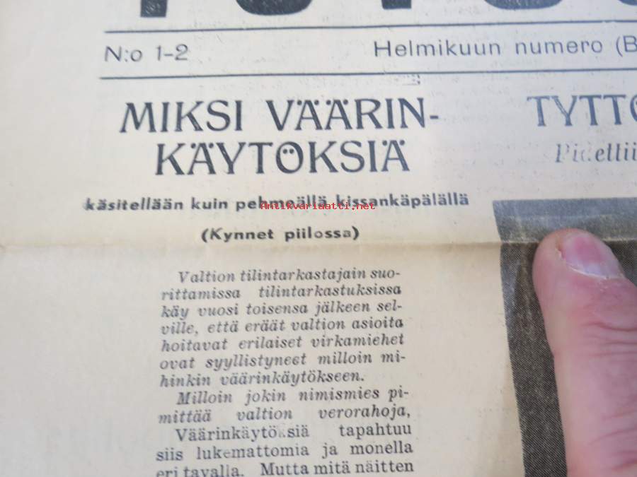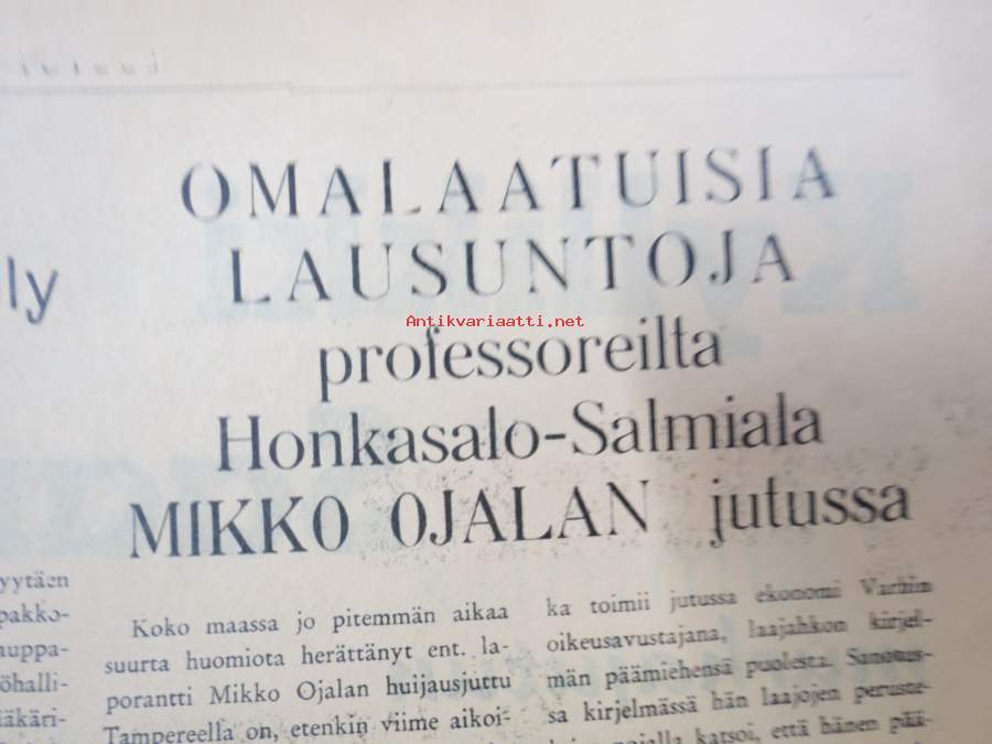 | Saatavilla | 0 kpl (Huom. tuote on myyty! / Sold out!) | | Julkaisuvuosi | 1956 | | Sivuja | 4 | | Kunto | K2 | | Sidonta/painoasu | Lehti | | Kielet | Suomi |