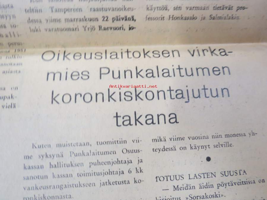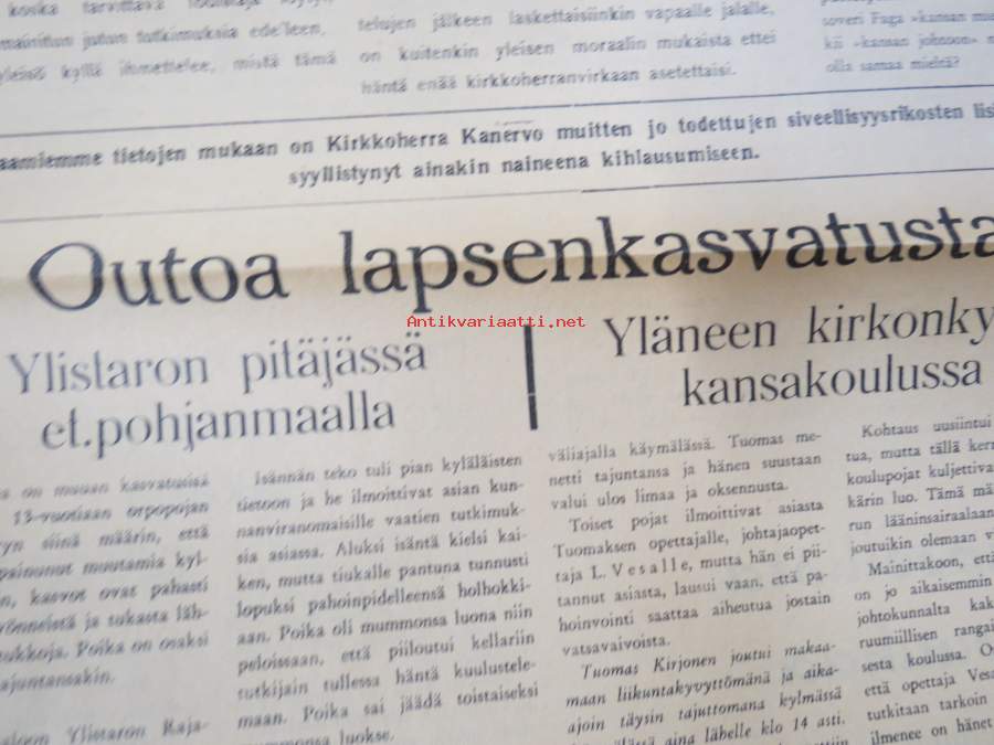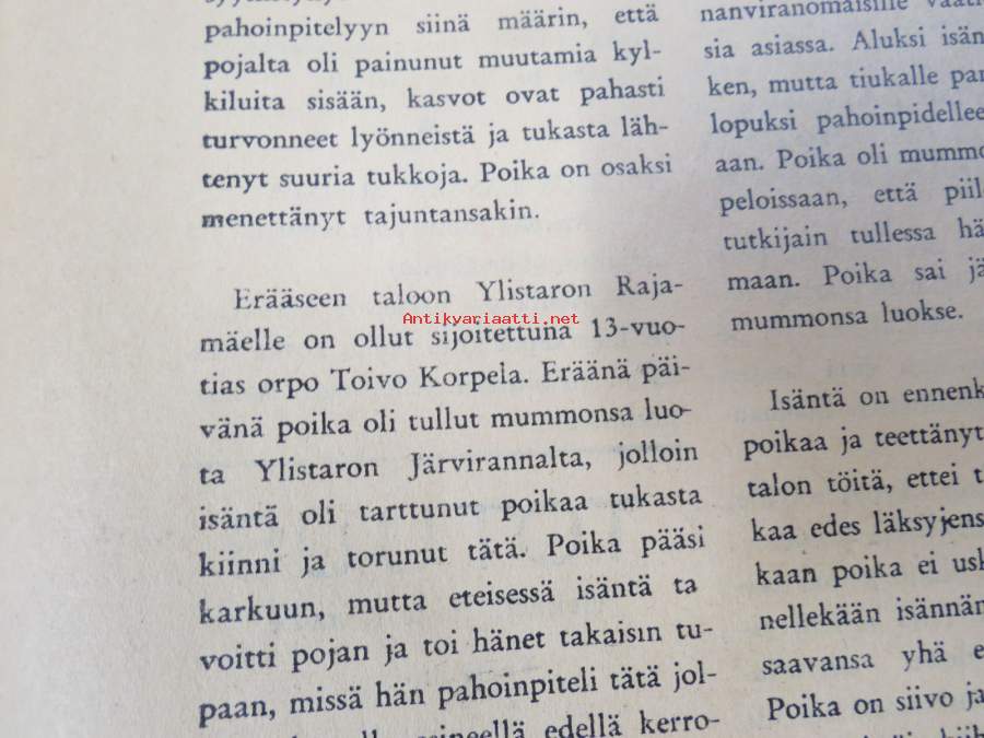 1956Yläneen kirkonkylän kansakoulussa, Orpopojan pahoinpitely Ylistaron pitäjässä, Punkalaitumen koronkiskontajuttu, ym.