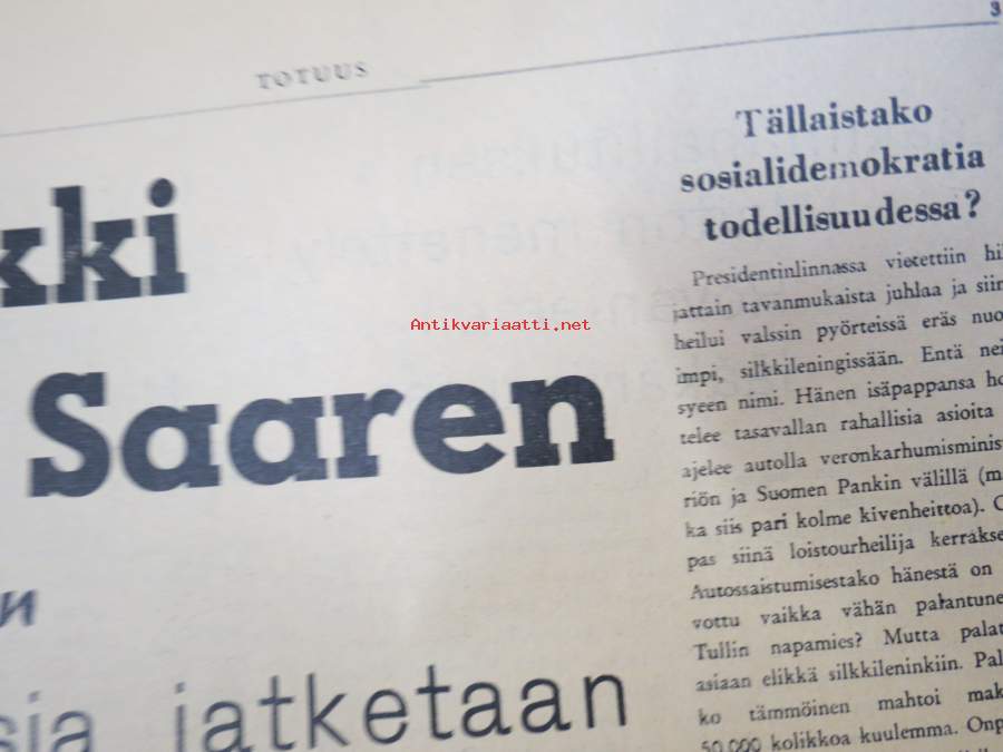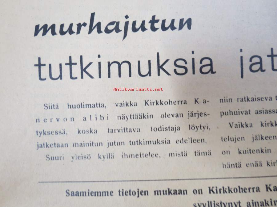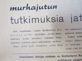 Totuus 1956 nr 1-2 -Tutkimuksia jatketaan Kyllikki Saaren murhajutussa - kirkkoherra Kanervo edelleen pidätettynä, Varokaa lainahuijareita, Outoa lapsenkasvatusta...