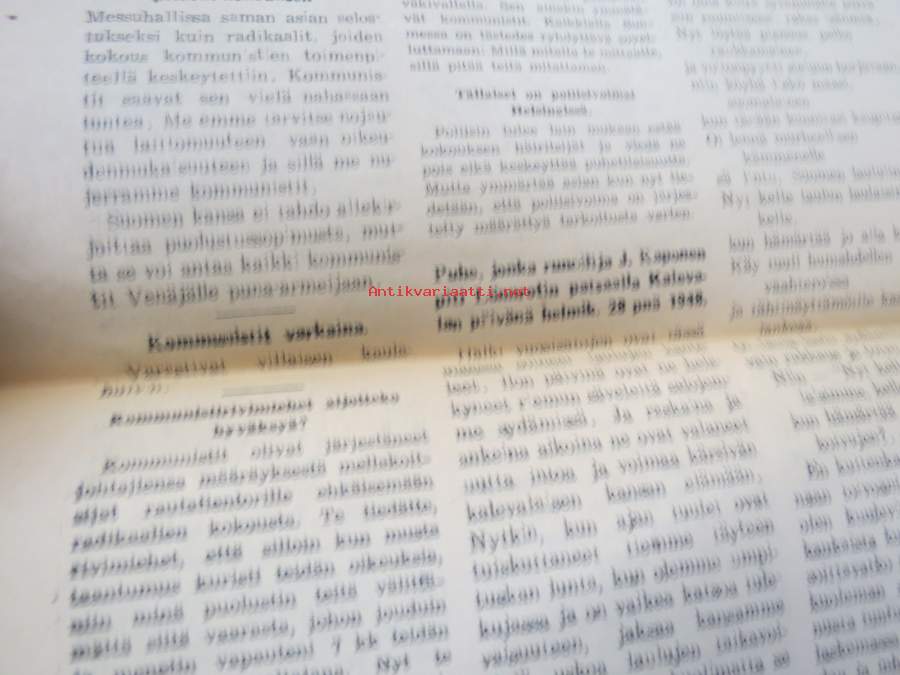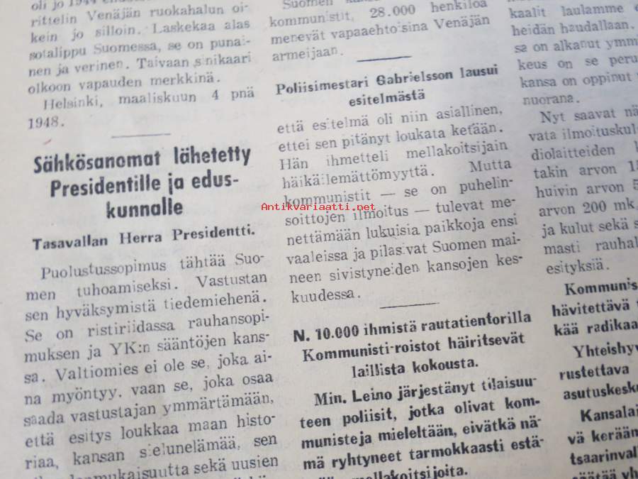 | Saatavilla | 0 kpl (Huom. tuote on myyty! / Sold out!) | | Julkaisuvuosi | 1948 | | Sivuja | 4 | | Kunto | K2 | | Sidonta/painoasu | Lehti |