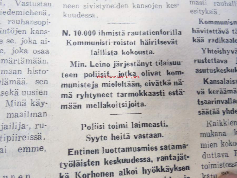 Radikaali Kansanpuolue, 1948Pasilan huligaanirykmentti, Kirje Stalinille, Ilmoittautukaa suojeluvartioon kokousten ajaksi, Pasilan Konepaja on (kommunisti)roistojen pesäpaikka, ym. Päätoimittaja Ernesti Hentunen, puolueensa äänenkannattaja, sisältää hyvinkin yksityiskohtaisia ja avoimia paljastuksia sekä syytöksiä yksityishenkilöistäkin.