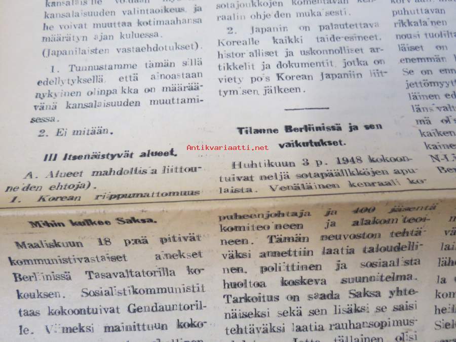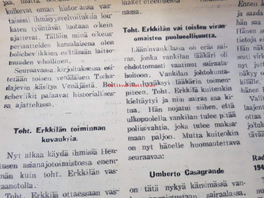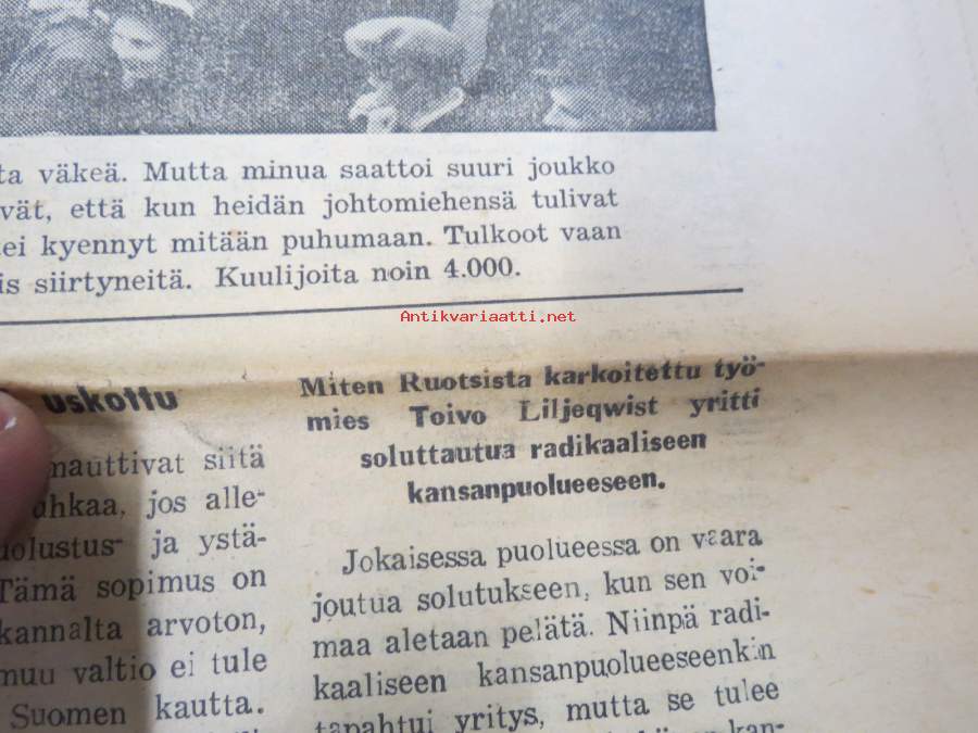 Puhetilaisuus TampereellaTilanne Berliinissä, Reumatismi, Te olette syyllisiä, ym. Päätoimittaja Ernesti Hentunen, puolueensa äänenkannattaja, sisältää hyvinkin yksityiskohtaisia ja avoimia paljastuksia sekä syytöksiä yksityishenkilöistäkin.