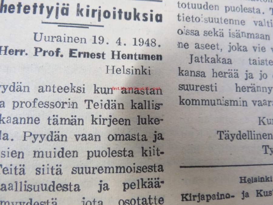 Totuuden Torvi 1948 nr 3, Ernesti Hentunen, Radikaalinen kansanpuolue -julkaisu, paljastuksia, skandaaleja, äärioikeiston naamioitumispyrkimyksiä, ym.