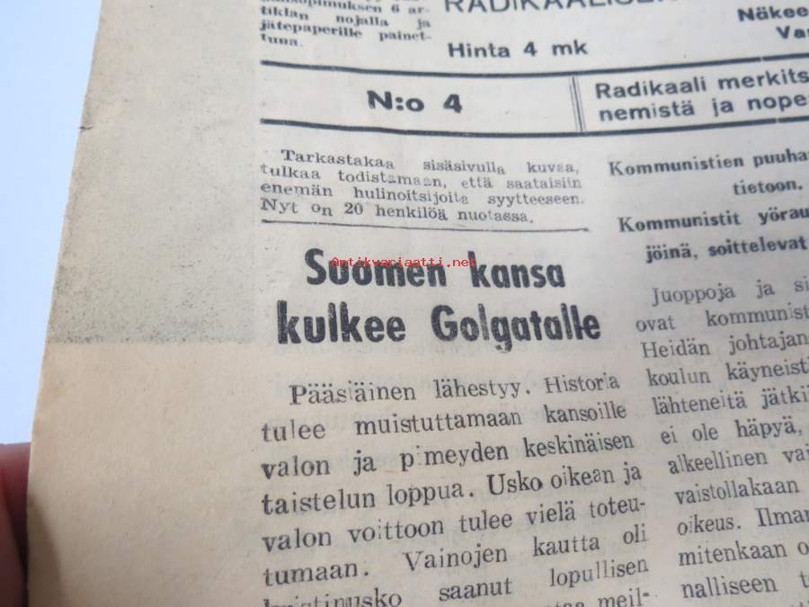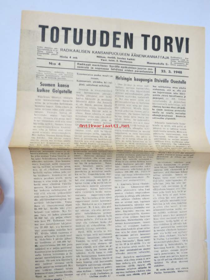Totuuden Torvi 1948 nr 4, Ernesti Hentunen, Radikaalinen kansanpuolue -julkaisu, paljastuksia, skandaaleja, äärioikeiston naamioitumispyrkimyksiä, ym.