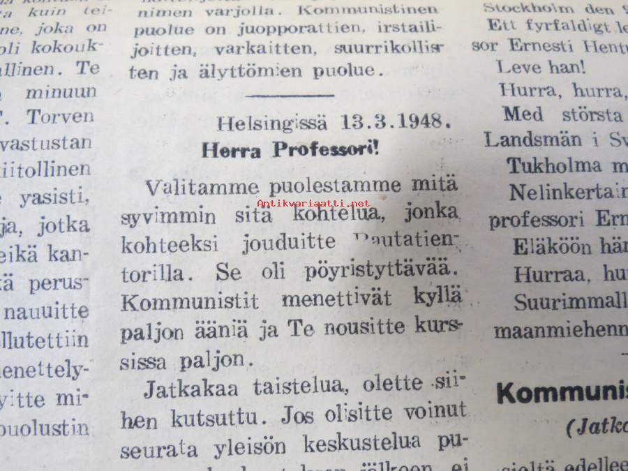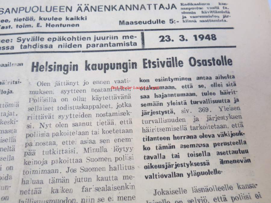 Totuuden Torvi 1948 nr 3, Ernesti Hentunen, Radikaalinen kansanpuolue -julkaisu, paljastuksia, skandaaleja, äärioikeiston naamioitumispyrkimyksiä, ym.