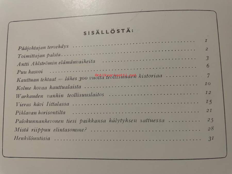 Me kaikki A. Ahlström Osakeyhtiön henkilökuntalehti 1956 nr 1, Kauttuan tehtaat, Varkauden tehtaat, Pihlavan tehtailla