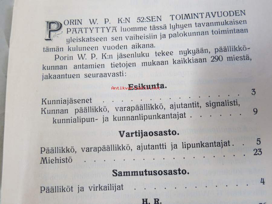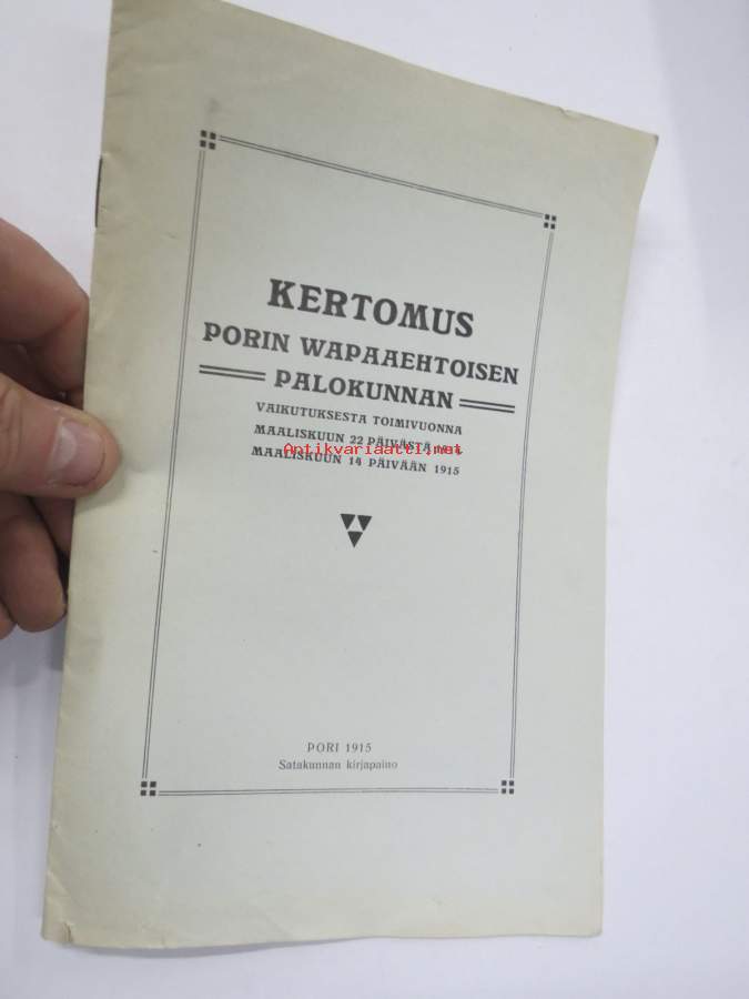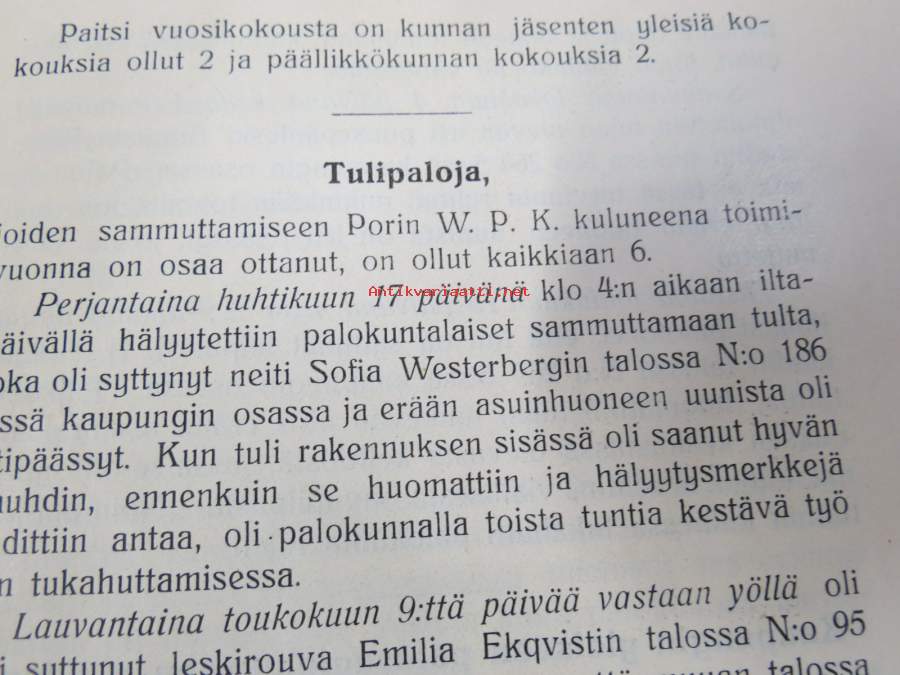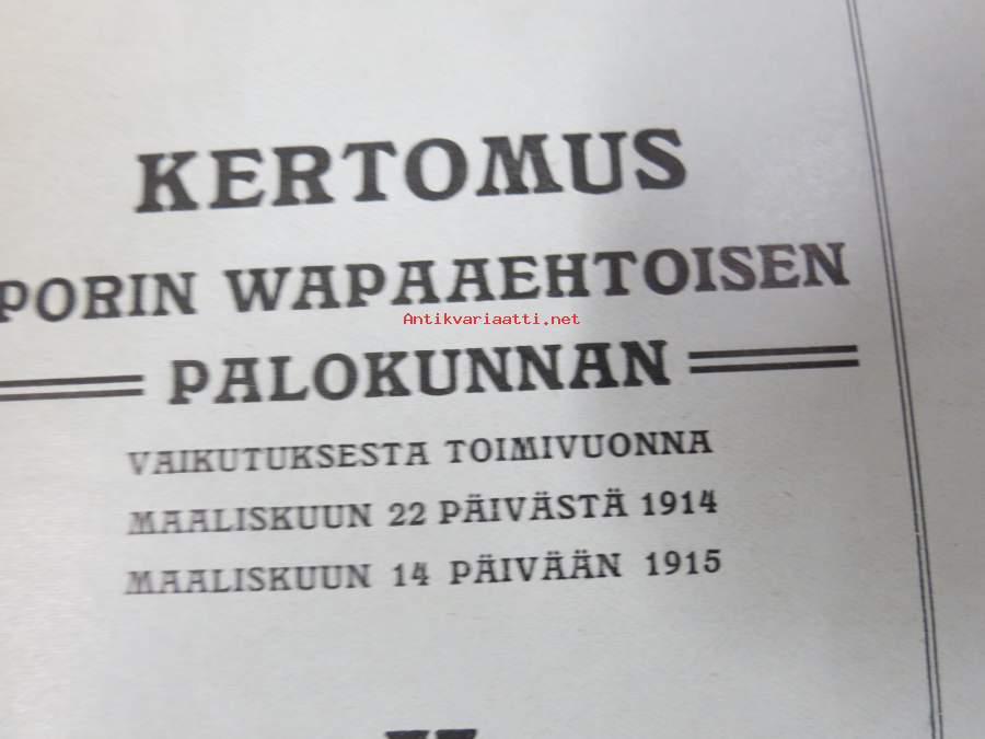 Kertomus Porin Wapaaehtoisen Palokunnan vaikutuksesta toimivuonna 1914-15