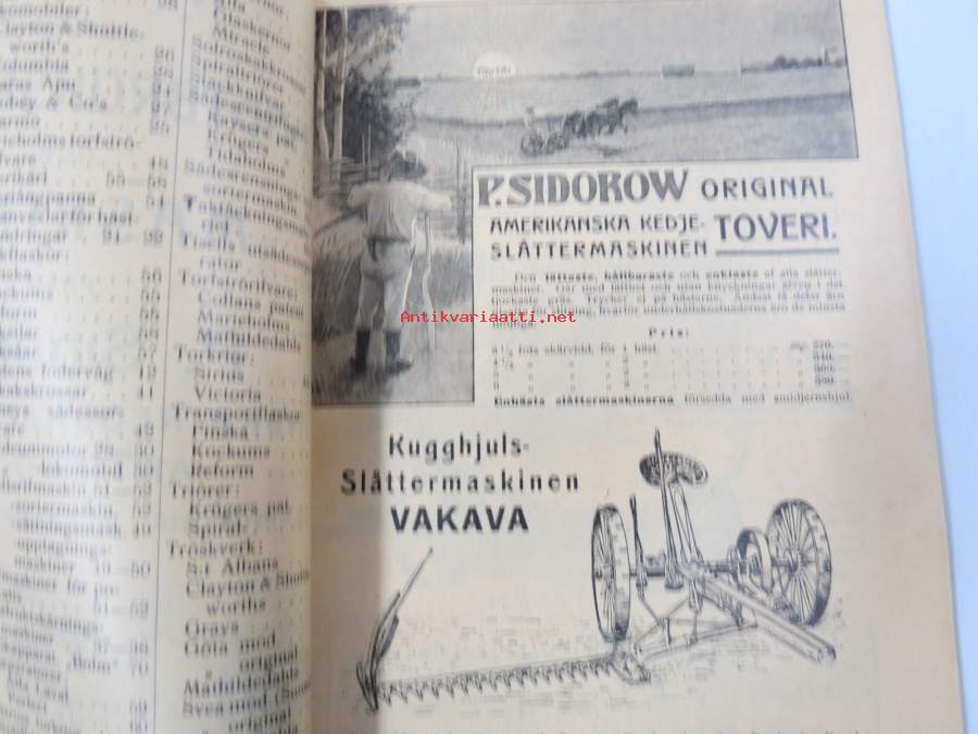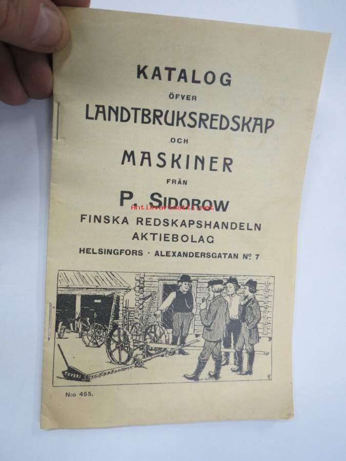 Katalog öfver Landtbruksredskap och maskiner från P. Sidorow -erittäin monipuolinen ja hyvin kuvitettu teos, mukana myös lokomobiilit ja petroleumimoottorit Näytä