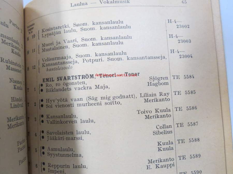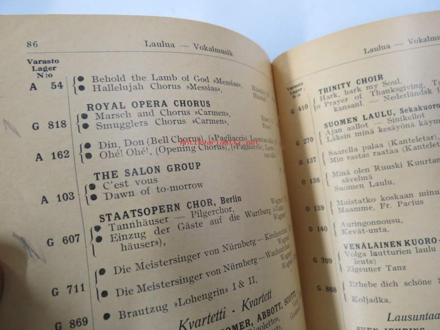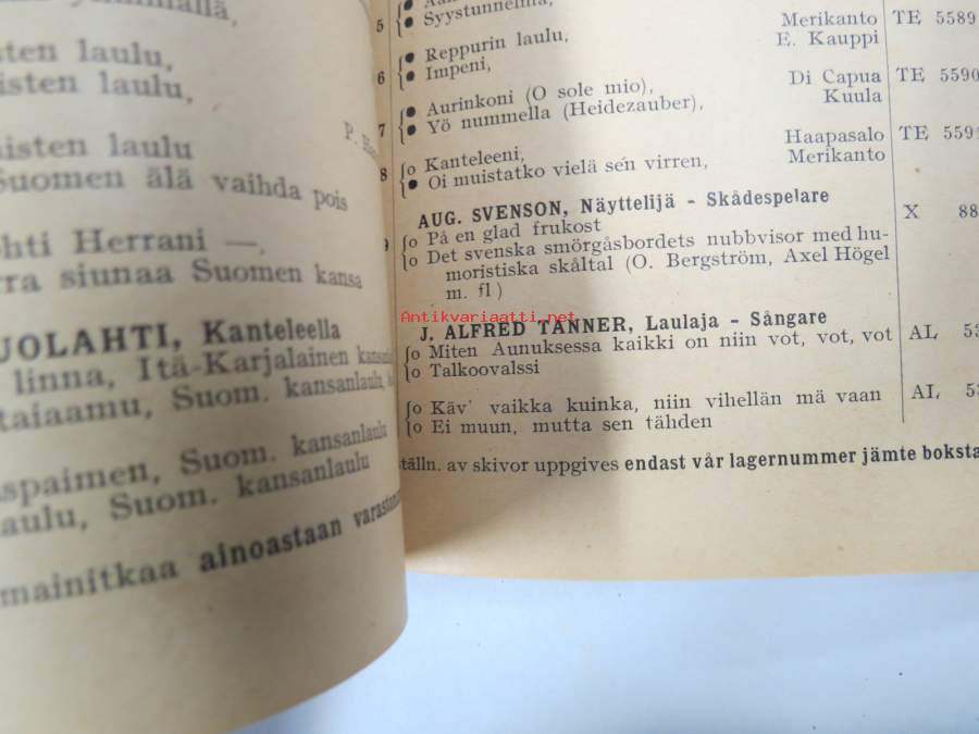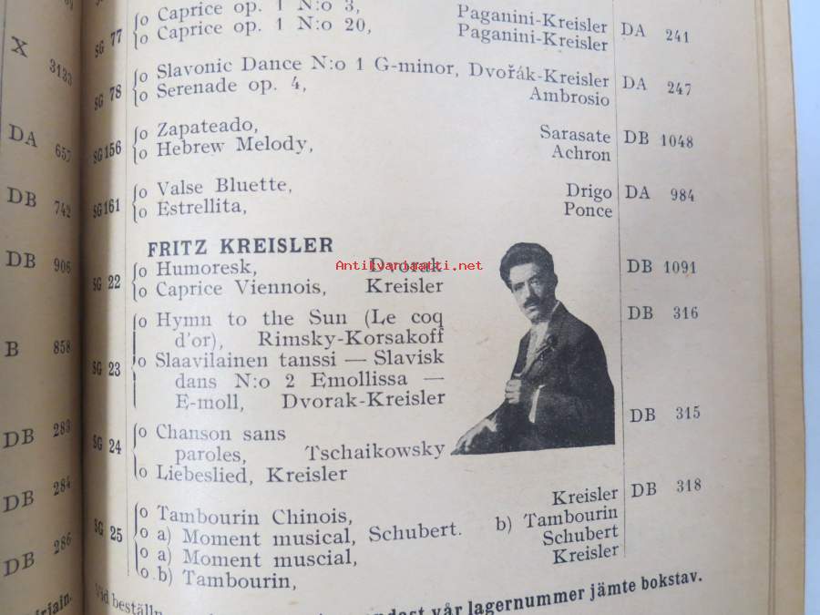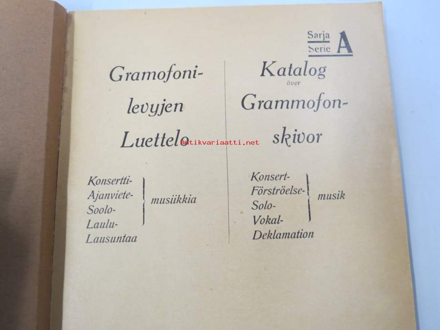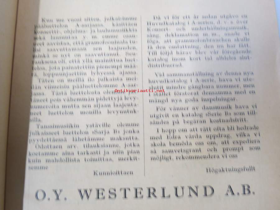 Gramofonilevyjen luettelo - Katalog över Grammophonskivor - R.E. Westerlund Sarja A Serie