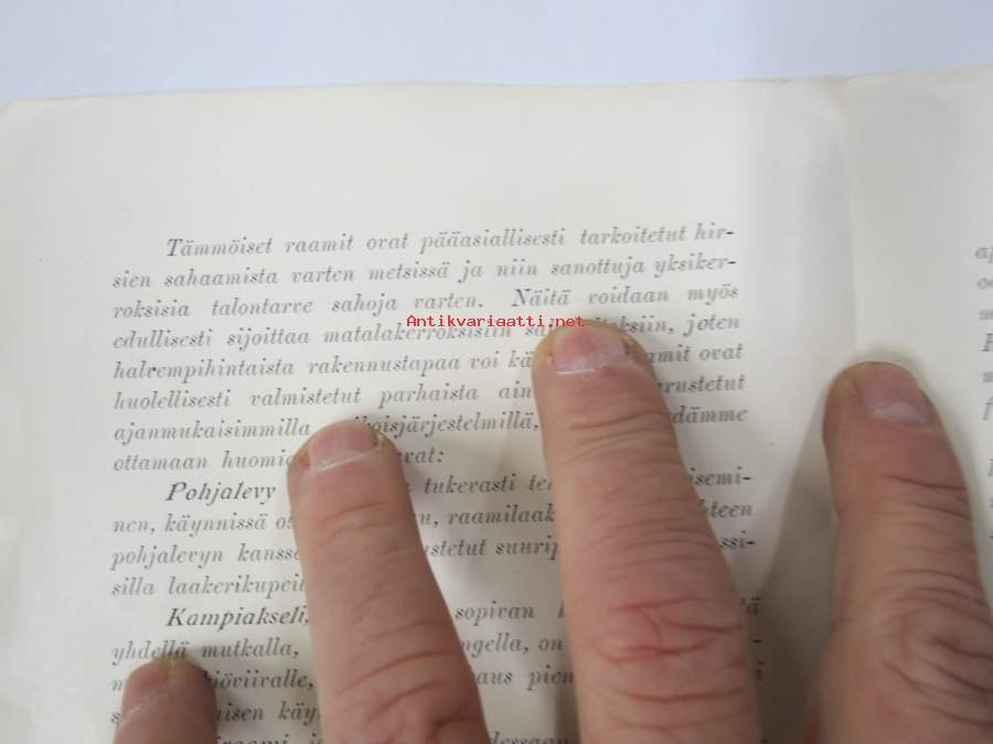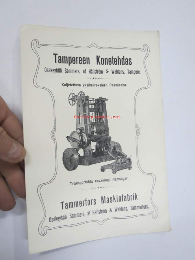 Tampereen Konetehdas Oy Sommers, Af Hällström & Waldens - Kuljetettava yksikerroksinen raamisaha -myyntiesite