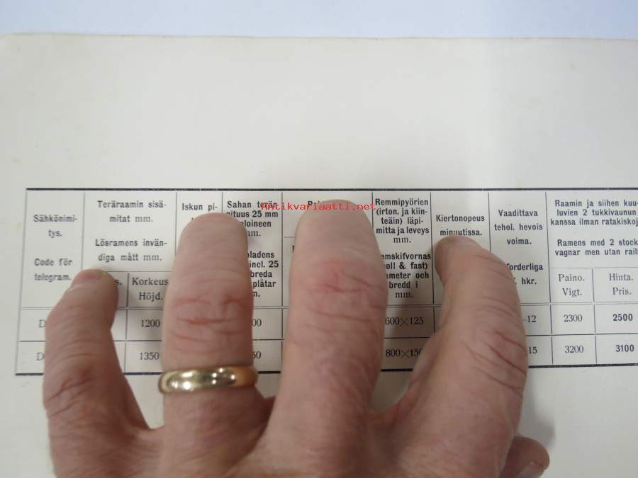 Tampereen Konetehdas Oy Sommers, Af Hällström & Waldens - Puuhöyläyskone / Trähyfvelmaskin -myyntiesite