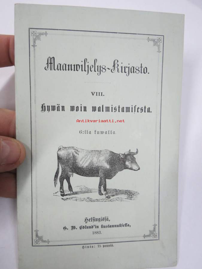 | Saatavilla | 0 kpl (Huom. tuote on myyty! / Sold out!) | | Julkaisuvuosi | 1883 | | Sivuja | 59 | | Painos | 1. | | Kunto | K3 | | Sidonta/painoasu | Nidottu (pehmeäk.) | | Kielet | Suomi |