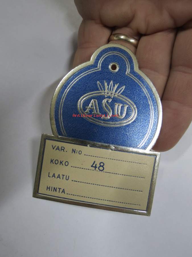 Asu -hintalappu / tuotetietolappu, merkin valmistaja Herman Mattsson Korkokuvapaino & Pussitehdas, Vaasa