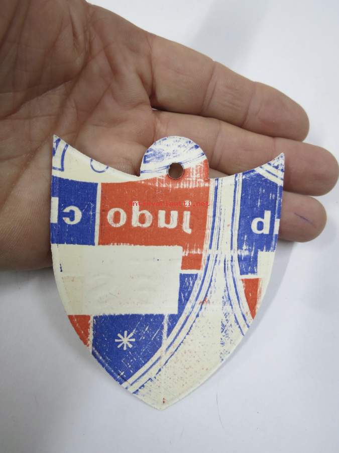 Ylläs judo club -hintalappu / tuotetietolappu, merkin valmistaja Herman Mattsson Korkokuvapaino & Pussitehdas, Vaasa