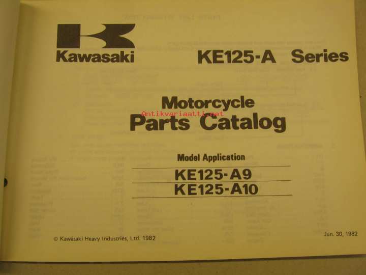 Kawasaki KE125-A parts catalog -varaosaluettelo