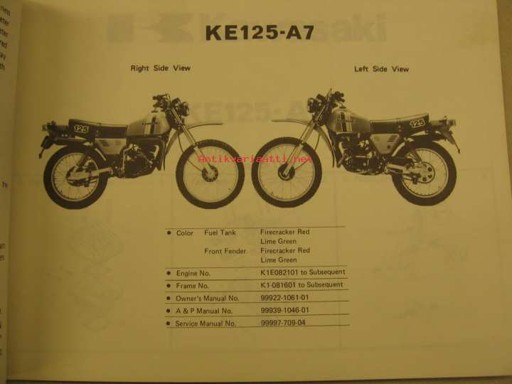 Kawasaki KE125-A parts catalog varaosaluettelo