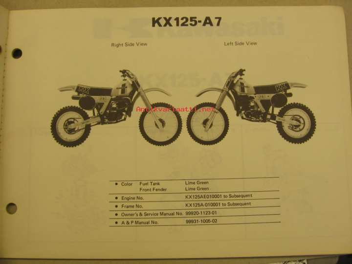 Kawasaki KX125-A parts catalog varaosaluettelo