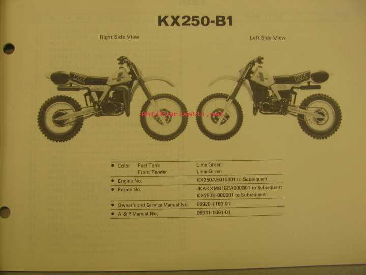 Kawasaki KX250-B parts catalog varaosaluettelo