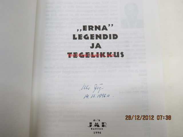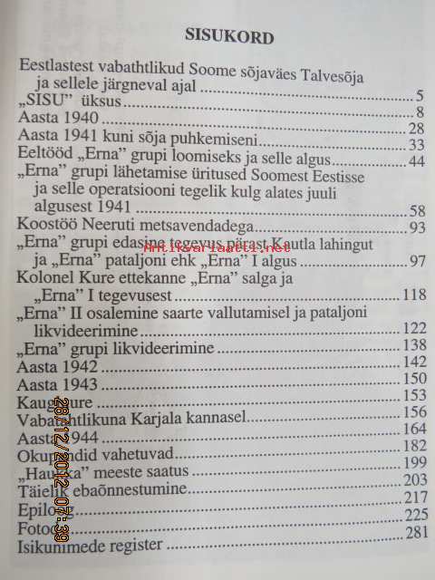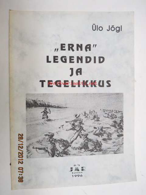 Jõgi Ülo, JMR, 1996 ERNA - Legendid ja tegellikus -eestiläisten sotilaiden vaiheita ja toimintaa osallistuessaan Suomen sotiin sekä operaatioihin omassa maassaan yhteistoiminnassa saksalaisten kanssa venäläisiä vastaan 15 x 20 cm.