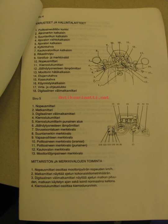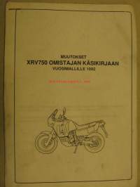 Honda XRV750 muutokset omistajan käsikirjaan vm. 1992