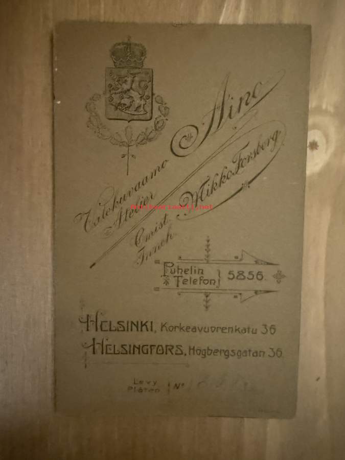 Valokuvaamo, Atelier Aino, Mikko Forsberg, Helsinki -visiittikorttivalokuva / visitcard photo - cdv