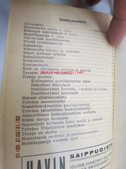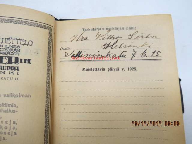 Työväen taskukirja 1925, kuulunut Vilho Sirénille