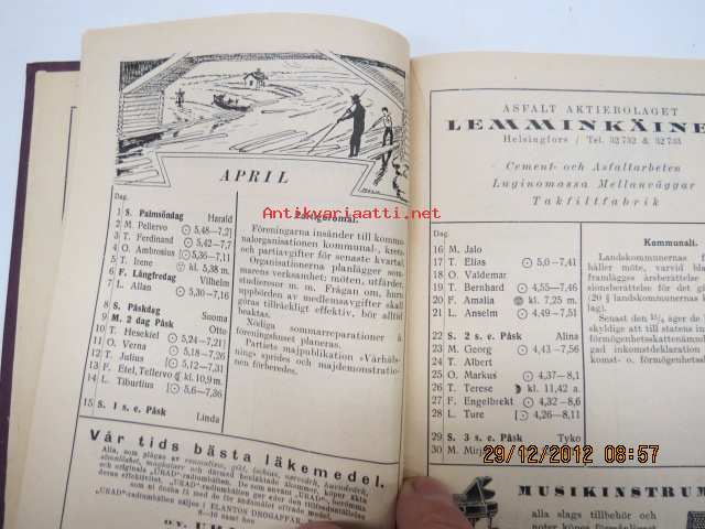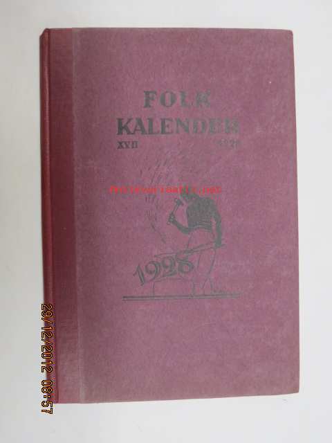 Socialdemokratiska Partibyråns Förlag, 1927 Folk kalender XVII 1928, innehåller mm. följande artikel; I anledning av tioårsminnet - inbördeskrig, Hur vi bygger och bor, Litet om suggestion och hypnos, Ur tjänstefolkets äldre historia i Finland 13 x 19 cm.