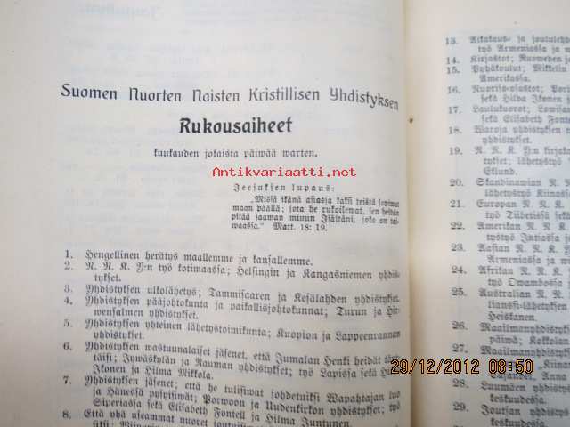 Suomen Nuorten Naisten Kristillinen Yhdistys, 1909 13 x 20 cm kirja.
